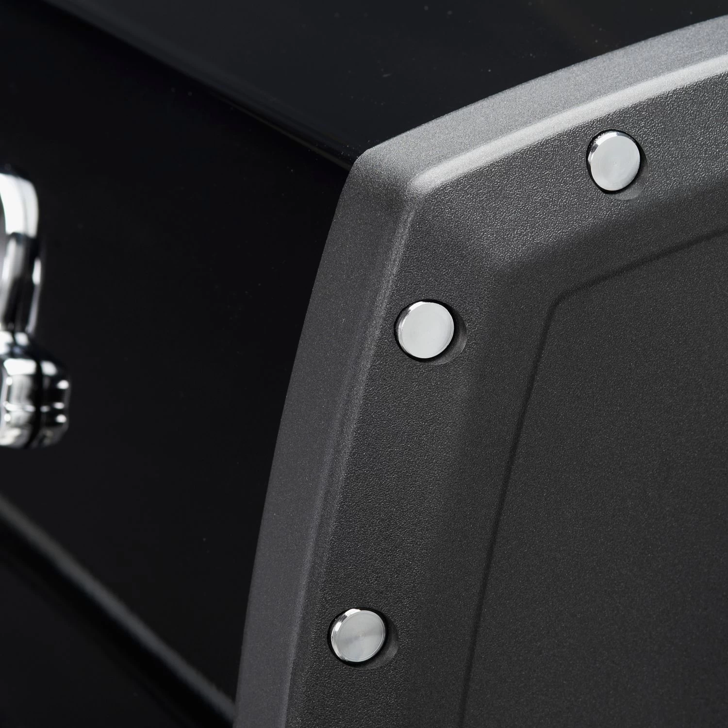 Das Fahrgestell besteht aus vier Lenkrollen, die höhenverstellbar sind und sich arretieren lassen. So können Sie den Grill einerseits ganz bequem an einen Einsatzort transportieren und andererseits ihn dort dann sicher und fest aufstellen.