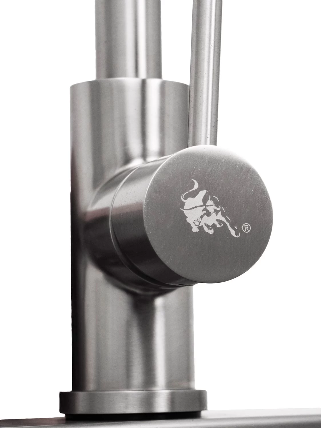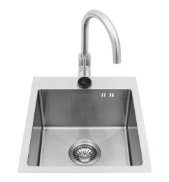 Das Bull Einbau – Spülbecken Größe S wird inkl. Wasserhahn mit Kalt-/Warmwasserranschluss geliefert.