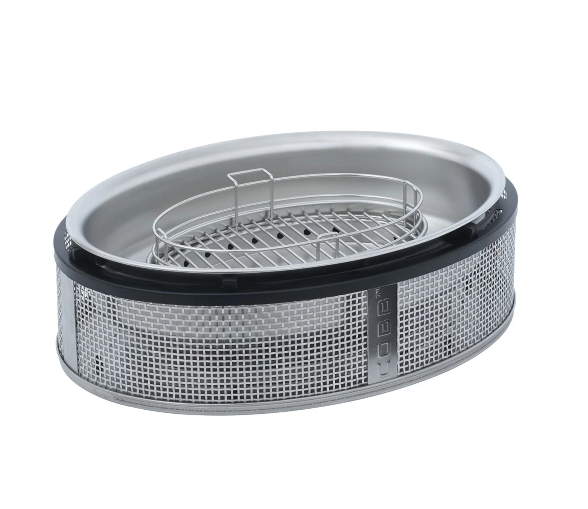 Die ovale Grillfläche bietet im Gegensatz zum Cobb Grill AIR Deluxe mit Ø 28 cm Abmessungen von 48 x 30 cm. Genügend Platz zum Grillen von leckeren Steaks, Fisch oder Meeresfrüchten oder zum Garen von saftigen Braten und Hähnchen. Mit den vielen verschiedenen optionalen Zubehörteilen lässt er sich individuell erweitern und für jedes kulinarische Vorhaben optimal anpassen.