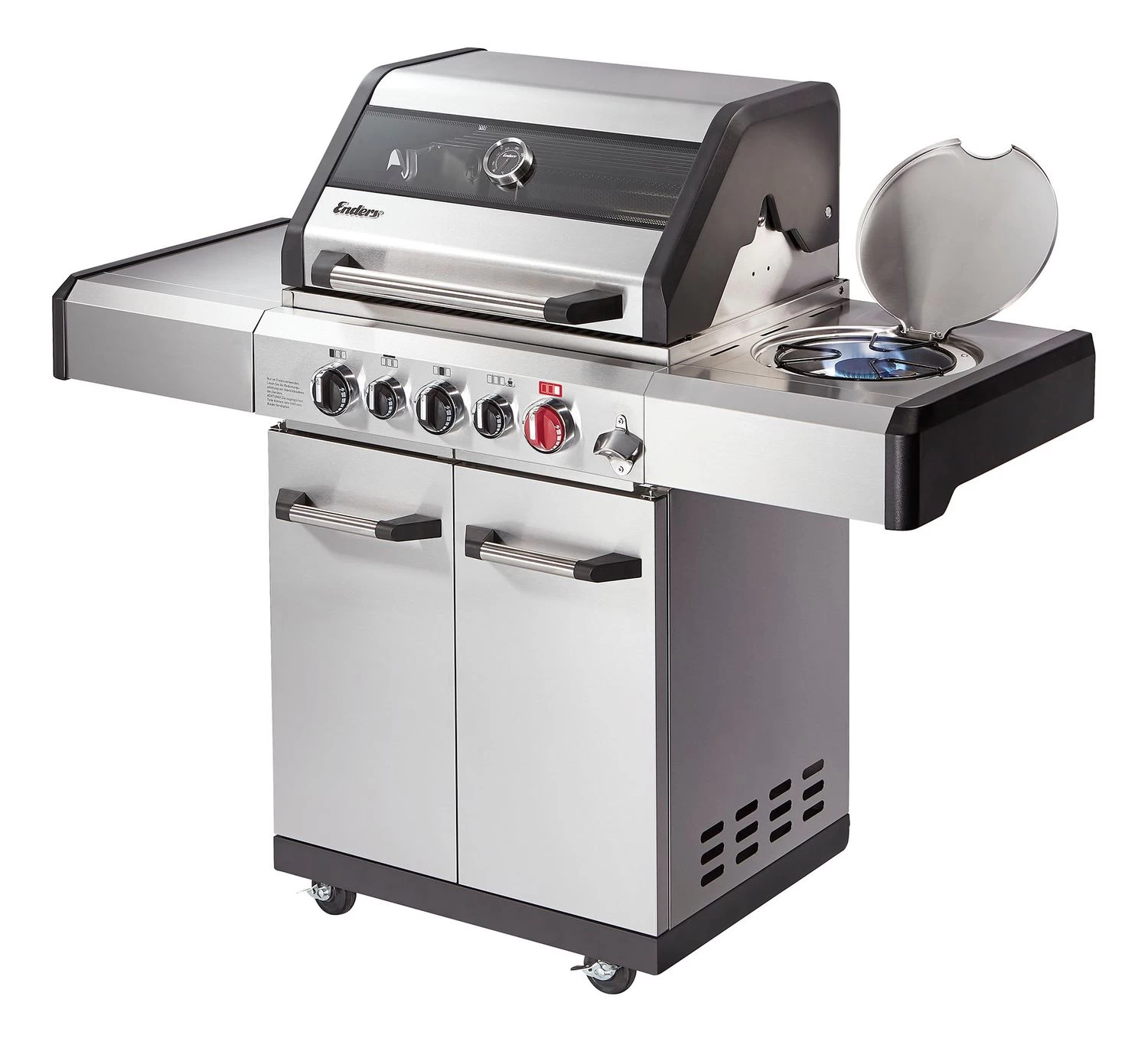 Vervollständigt werden die Vielfältigen Zubereitungsmöglichkeiten mit einem praktischen Seitenkocher und einem Edelstahl-Infrarot-Heckbrenner. Der klassische Seitenkocher mit Ringbrenner bietet die Möglichkeit Beilagen, Saucen, Suppen, Eintöpfe oder Pfannengerichte komfortabel zuzubereiten, ohne dabei die Grillfläche in Anspruch nehmen zu müssen.