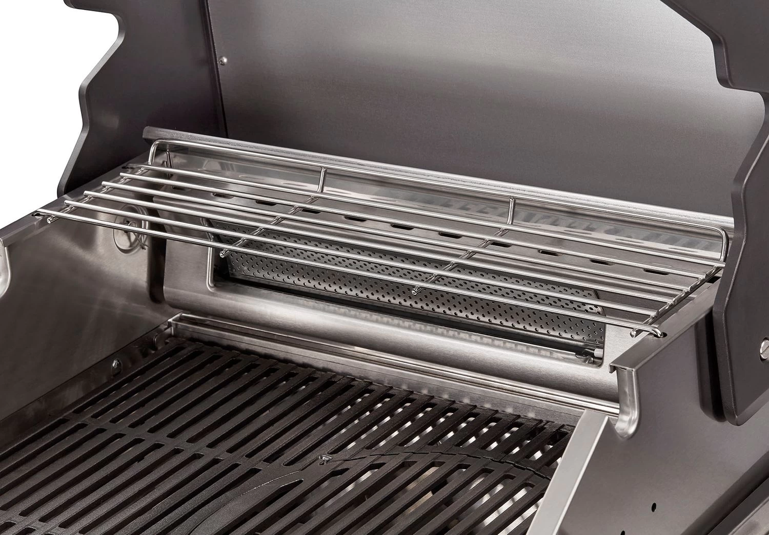 Für die extra Power sorgt ein Edelstahlbrenner mit 4,2 kW zusammen mit einem darüberliegenden Edelstahl-Mesh. Sobald der Brenner bei Maximalleistung das Edelstahlmesh zum Glühen gebracht hat, entsteht eine besonders hohe Infrarothitze zum scharfen Anbraten.