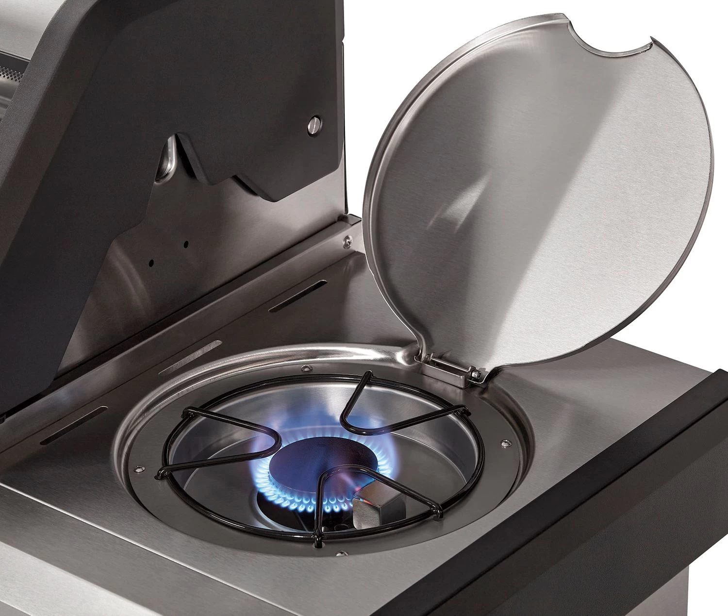 Vervollständigt werden die Vielfältigen Zubereitungsmöglichkeiten mit einem praktischen Seitenkocher und einem Edelstahl-Infrarot-Heckbrenner. Der klassische Seitenkocher mit Ringbrenner bietet die Möglichkeit Beilagen, Saucen, Suppen, Eintöpfe oder Pfannengerichte komfortabel zuzubereiten, ohne dabei die Grillfläche in Anspruch nehmen zu müssen.