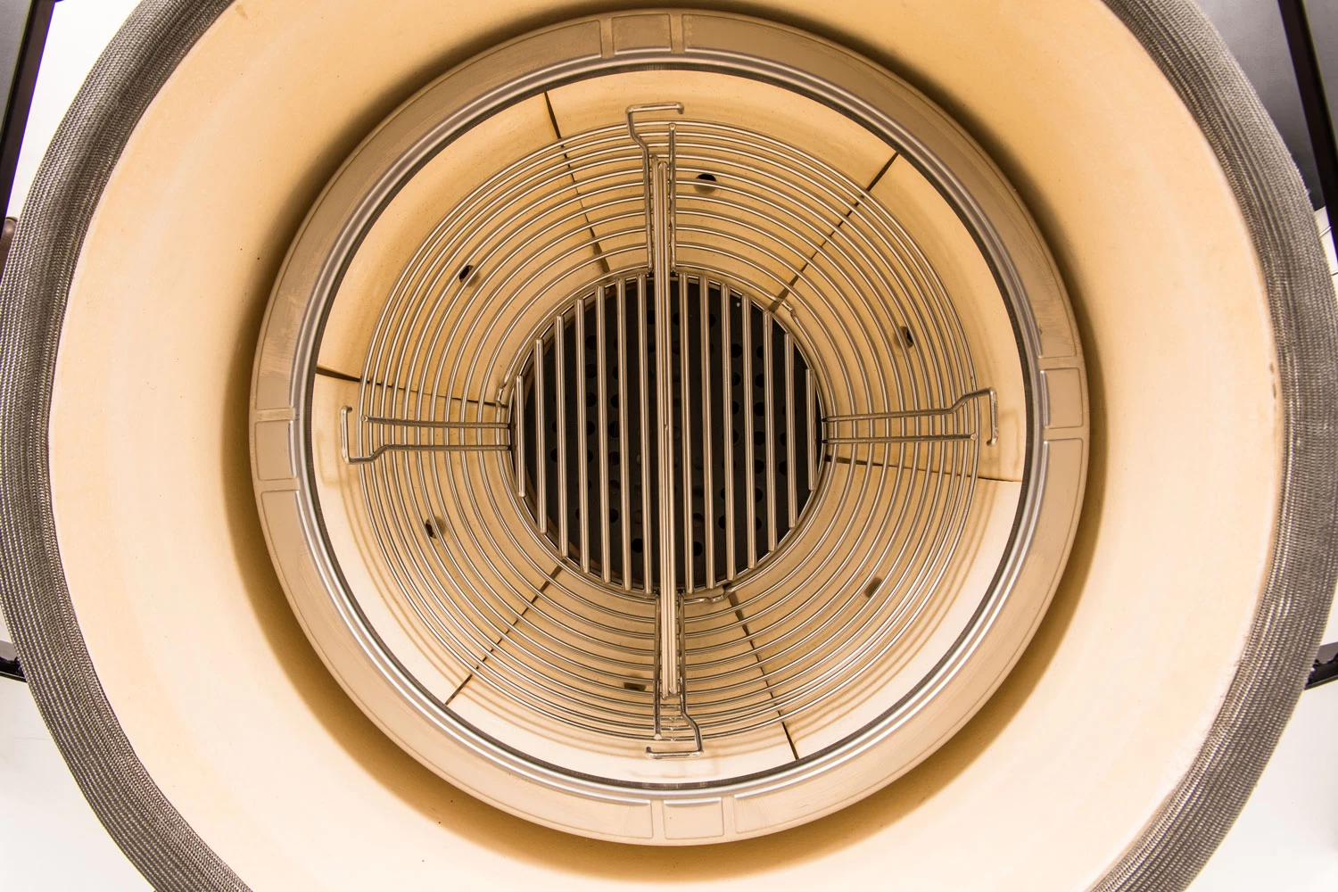 Der Kamado Joe besteht aus einer dickwandigen Keramik mit einer zusätzlichen Keramikbox innen liegend. Durch die zusätzliche Box kann die Hitze im Gerät optimal reflektiert werden und im Inneren gespeichert werden.
