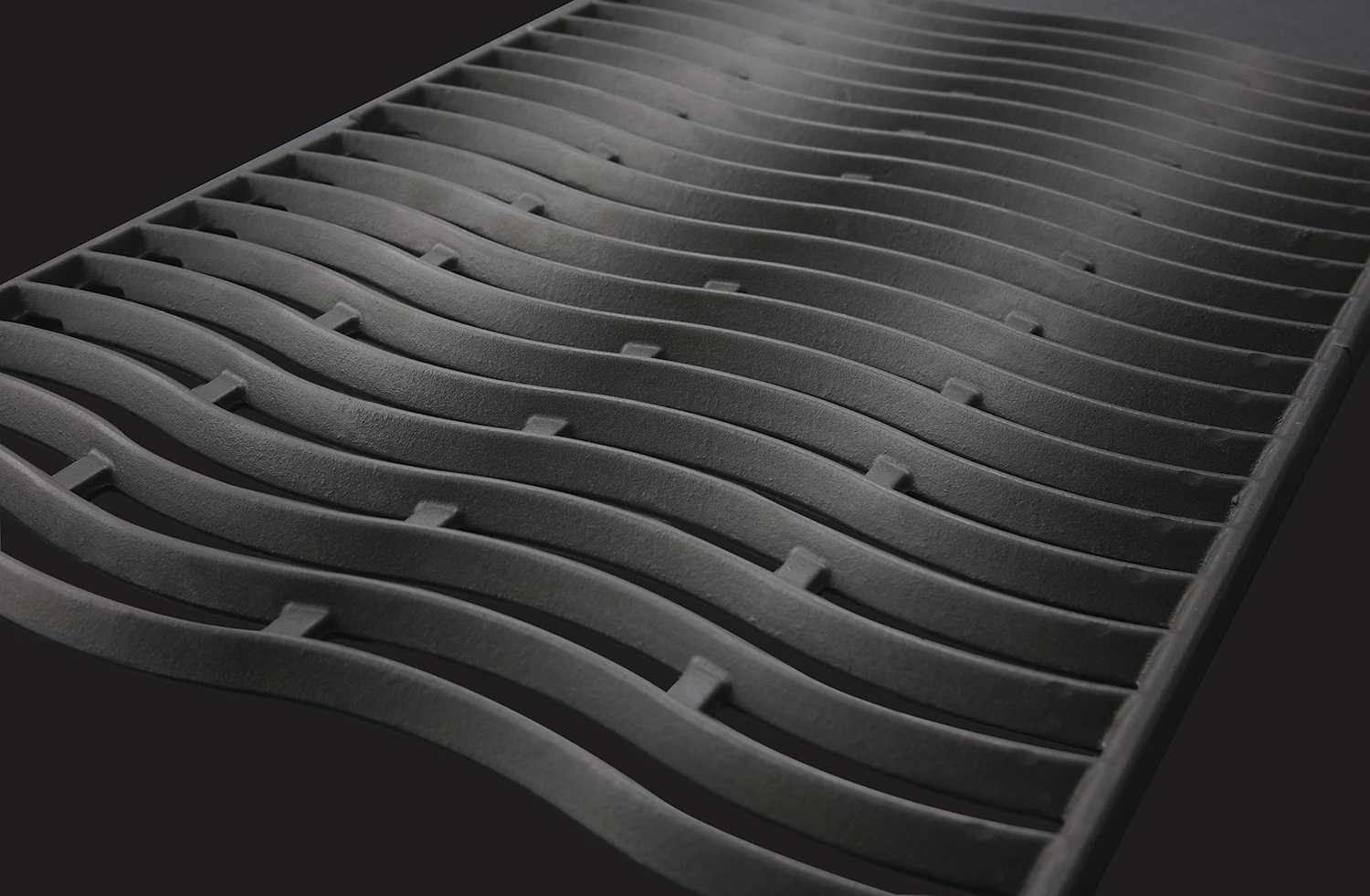 Hochwertige schwere Gusseisenroste bieten schnelle Aufheizphasen und tolle Brandings. Die Gussroste im WAVE- Design besitzen eine leichte Emaillierung, um die Reinigung zu vereinfachen.