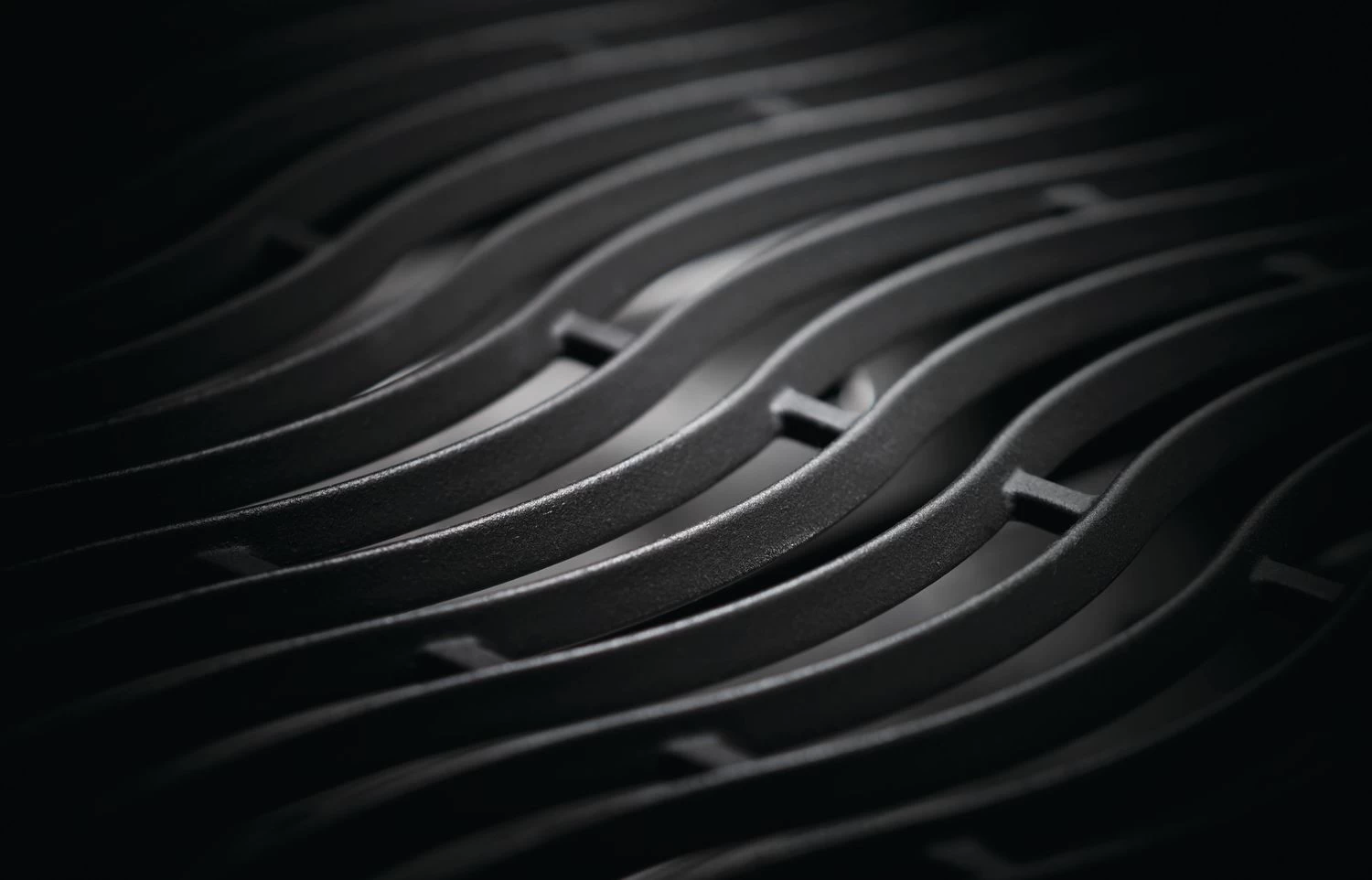 Hochwertige schwere Gusseisenroste bieten schnelle Aufheizphasen und tolle Brandings. Die Gussroste im WAVE- Design besitzen eine leichte Emaillierung, um die Reinigung zu vereinfachen.
