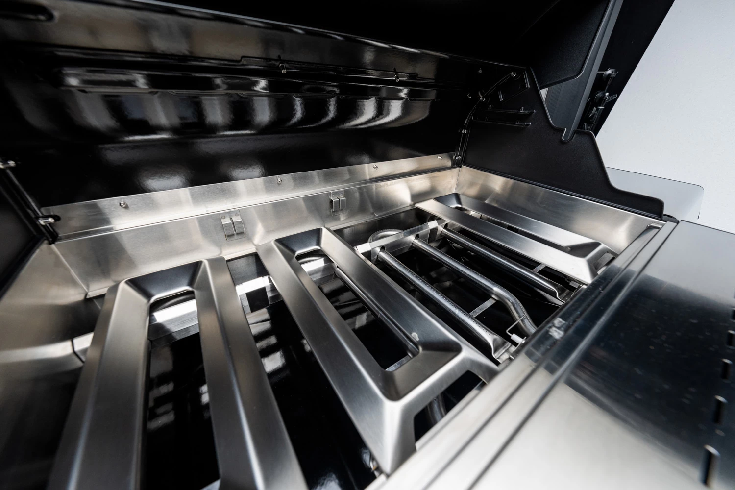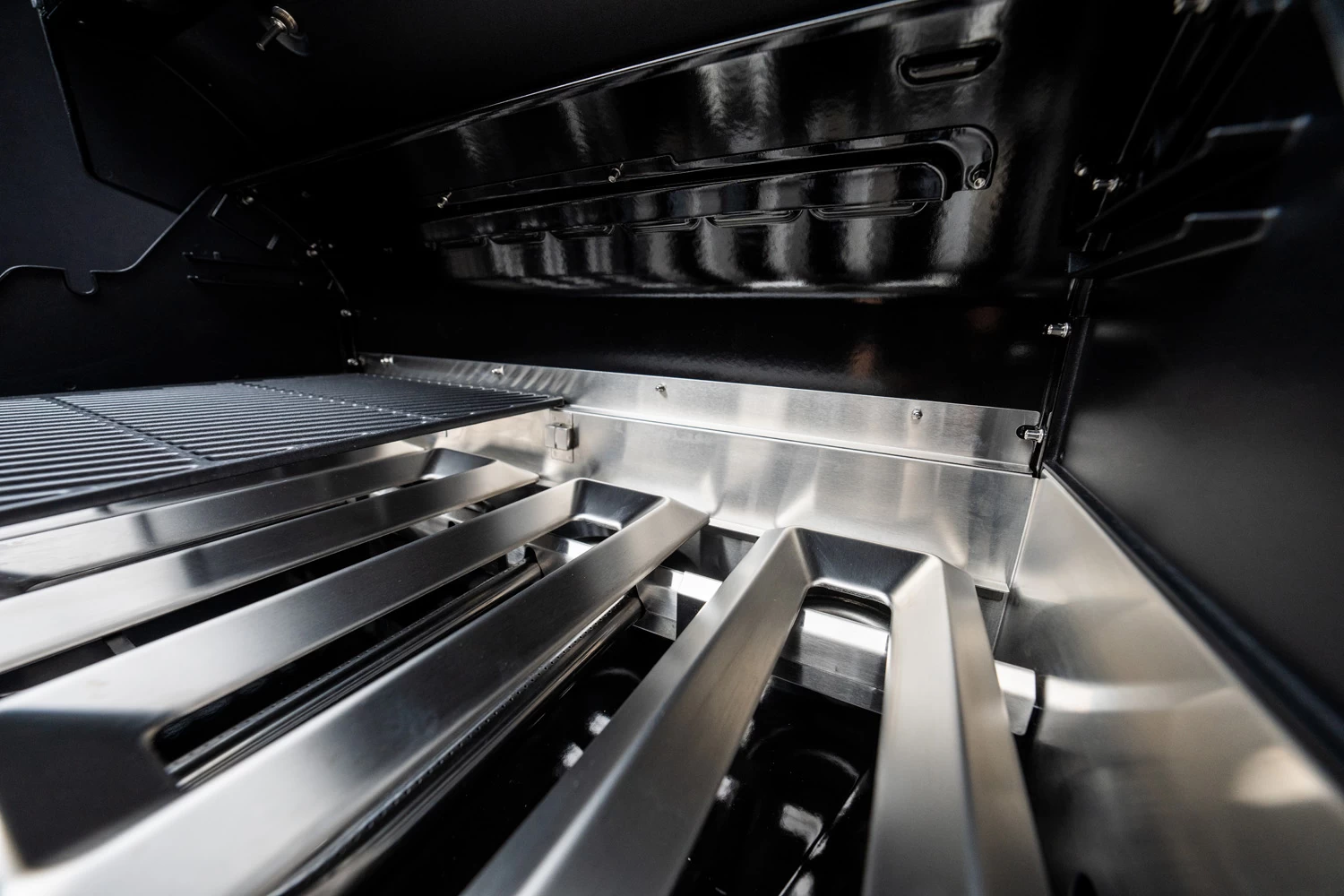 Eine weitere wichtige Aufgabe der Protection Bars besteht in der gleichmäßigen Wärmeverteilung der von den Brennern aufsteigenden Hitze. Dank der oben erwähnten, U-förmigen Bauweise der Brenner wird im Zusammenspiel mit den Protection Bars eine besonders gleichmäßige Hitzeverteilung auf der Grillfläche erzeugt – für besonders gute Grillresultate.