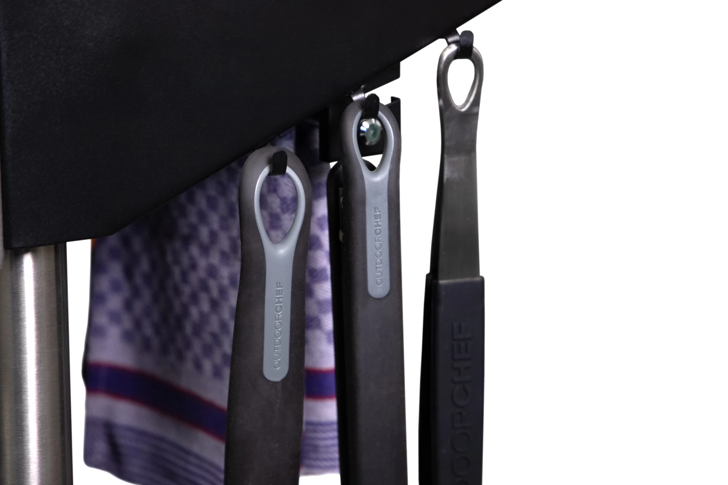 In dem stabilen Unterschrank aus pulverbeschichtetem Stahl findet eine 5 kg oder 8 kg Gasflasche sowie verschiedene Grillutensilien problemlos Platz. Vier arretierbare Lenkrollen sorgen dafür, dass sich der Gasgrill einfach und sicher manövrieren lässt. Komplettiert wird die komfortable Grillstation von Outdoorchef mit zwei Seitenablagen aus besonders robustem, edlem Granit, die mit praktischen Besteckhaken und einem Geschirrtuchhalter ausgestattet sind.
