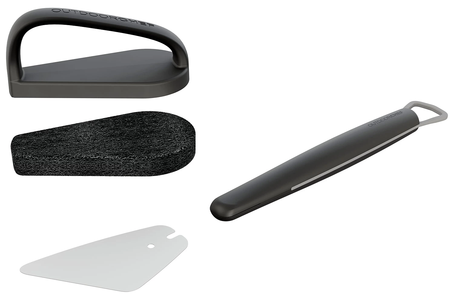 Der Outdoorchef Trichter-Schaber ist das perfekte Werkzeug zur Reinigung der Easy Flip Trichter. Mit der flexiblen Klinge lassen sich eingebrannte Rückstände schnell und einfach entfernen. In dem praktischen Reinigungsset ist zudem ein Schwamm enthalten, der die Trichter in neuem Glanz erstrahlen lässt.