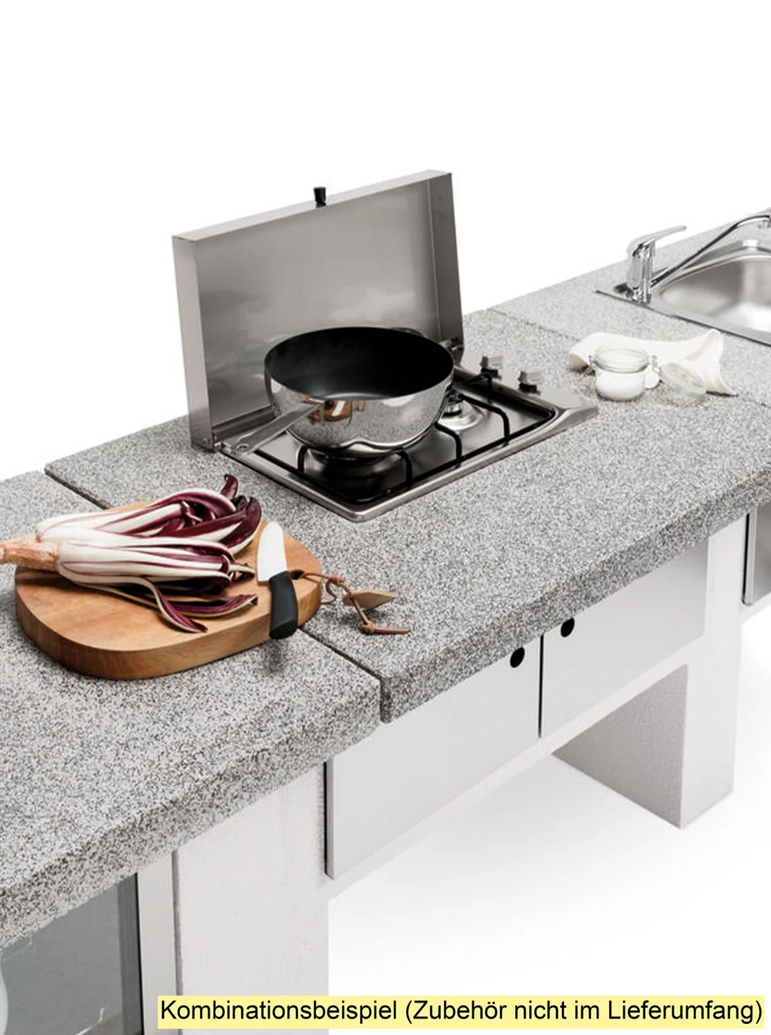 | Bezeichnung: | Palazzetti Gartenküche: Modul 2- flammige Gaskochstelle mit Edelstahl Abdeckung, Marmortech grau |