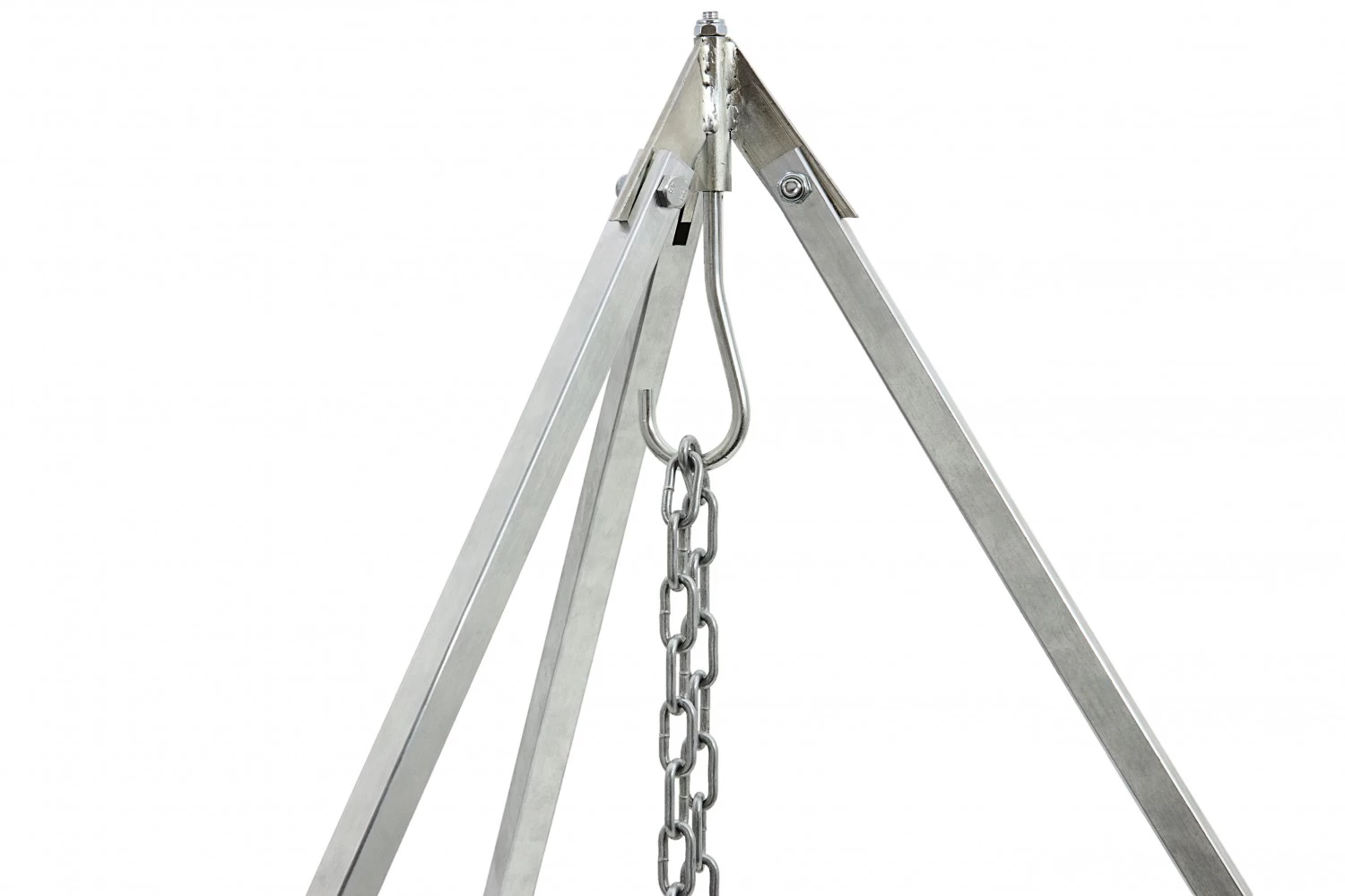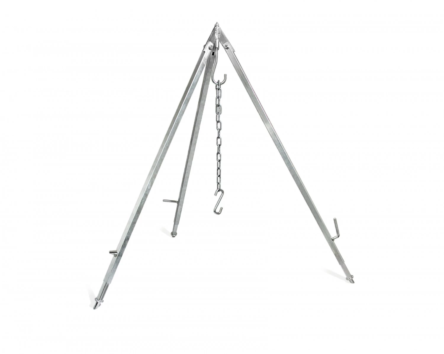 An dem robusten Gestellt mit Haken können Sie neben den verschiedenen Dutch Oven natürlich auch einen Grillrost (z.B. der Petromax Hängerost) oder die Peteromax Hänge-Feuerschale befestigen und das Dreibein zu einem Schwenkgrill machen.