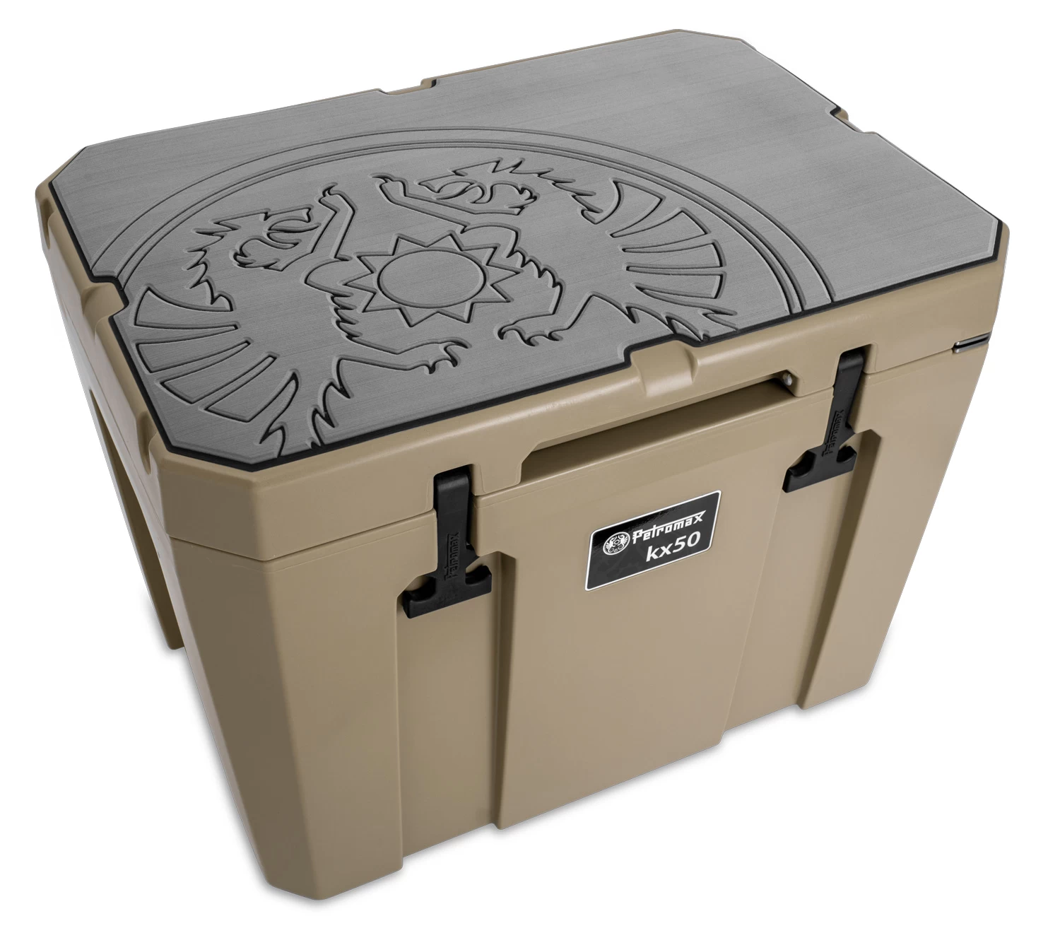 Die Petromax Haft-Auflage für die Kühlbox kx50 sieht nicht nur besonders schick aus, sondern bietet eine griffige Oberfläche und idealen Schutz für die Petromax Kühlbox kx50.